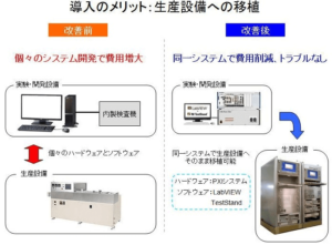 NI​社​製品​と​LabVIEW​を​使用​する​こと​により、​品質​の​高い​システム​を​短期間​で​構築​する​こと​が​可能​となり、​性能/​納期/​コスト​削減​の​面​で​ユーザー​様​へ​貢献​する​こと​が​でき​た。​また、​NI​社製品を増設することで容易に測定点数が増やせ、​高​機能​で​拡張​性​に​も​優れる​システム​を​開発​する​こと​が​でき​た。​NI​社​製品​と​LabVIEW​を​活用​した​システム​は、​他の​評価​について​も​今後​展開​さ​れ​て​行く​こと​が​充分​期待​できる。