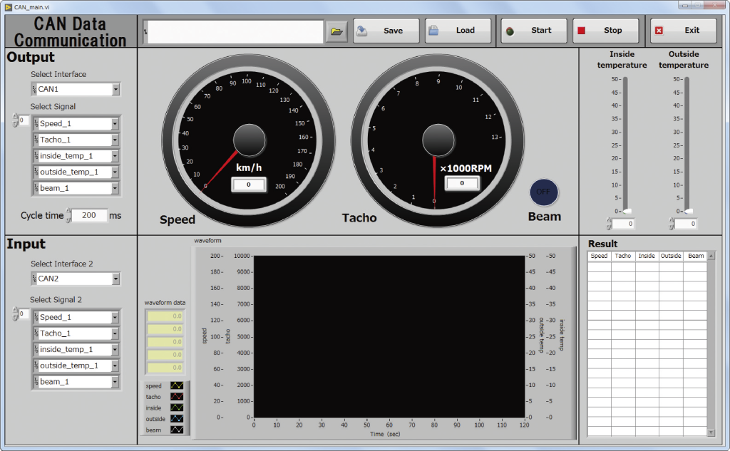 - CAN Interfaceを使用して、スピードメータ、タコメータ、外気温度、車内温度、ビームのCANデータを一定周期で送受信するプログラムを製作する