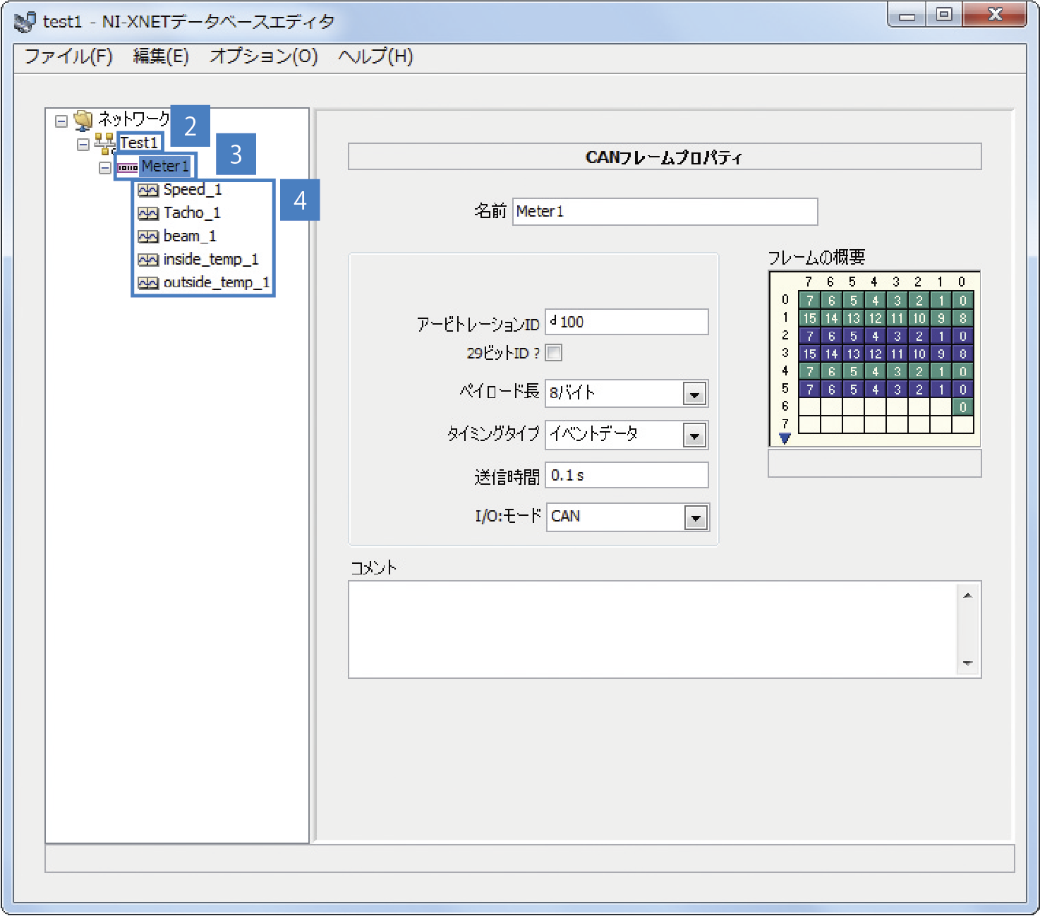 - CANデータベースファイルは、NI-XNETデータベースエディタで作成できる