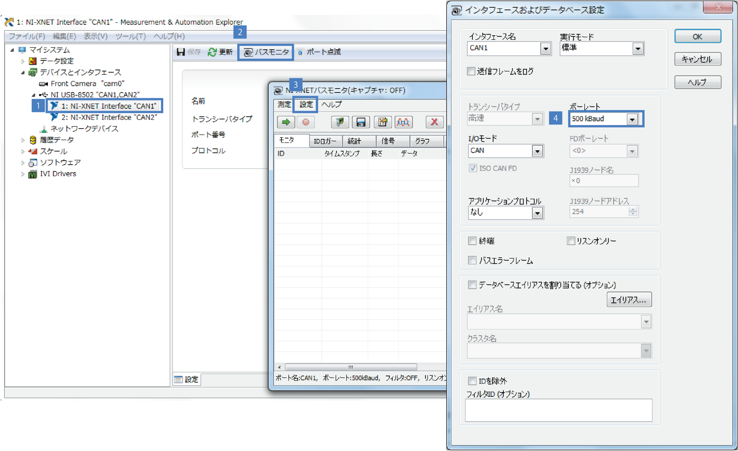 - CAN通信のモニタとロギングは、NI MAXから起動するバスモニタを使用すれば簡単に実現できる。
