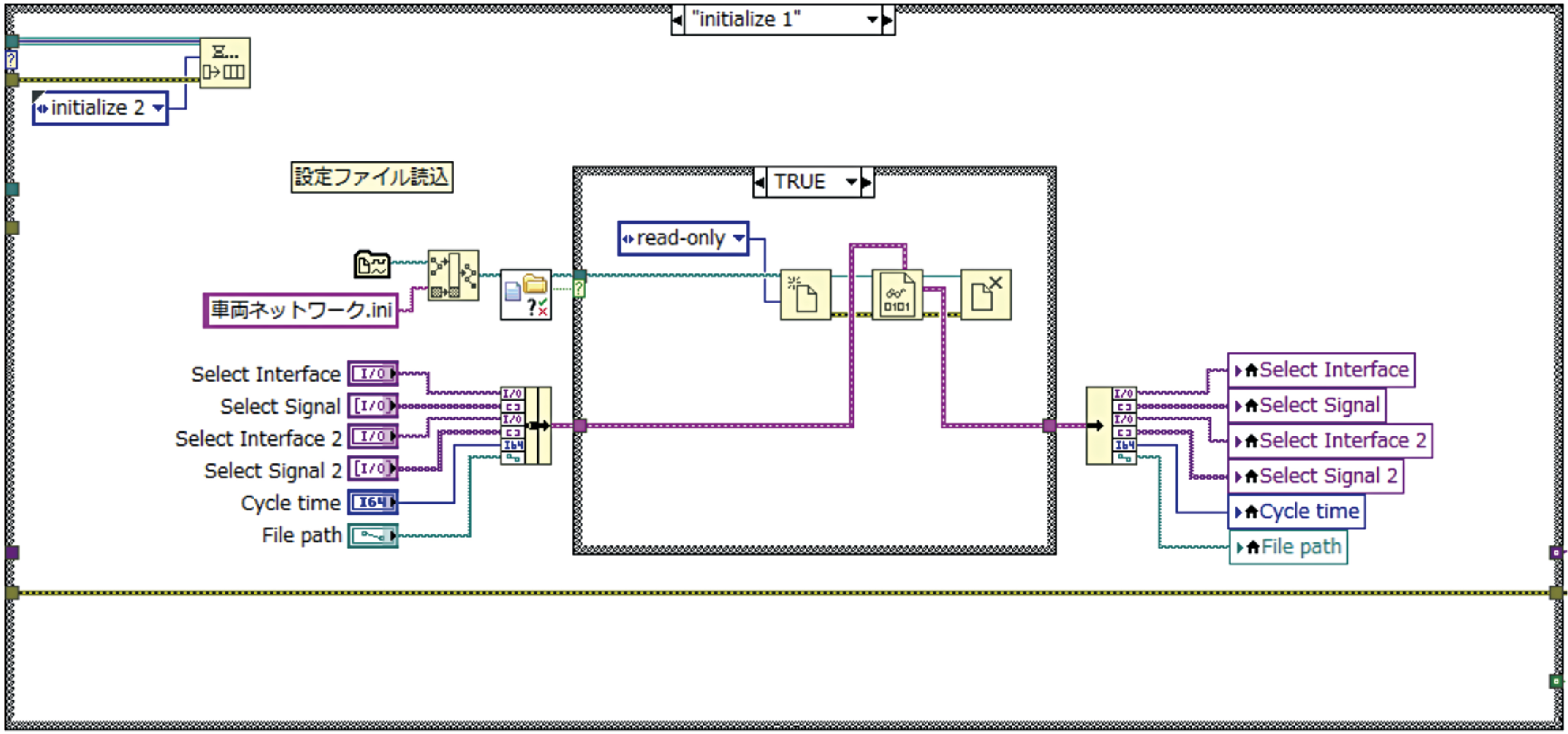 X-NET(CAN受信)の初期化と開始を実行する。Result表を初期化するために空白の配列をシフトレジスタへ接続する。