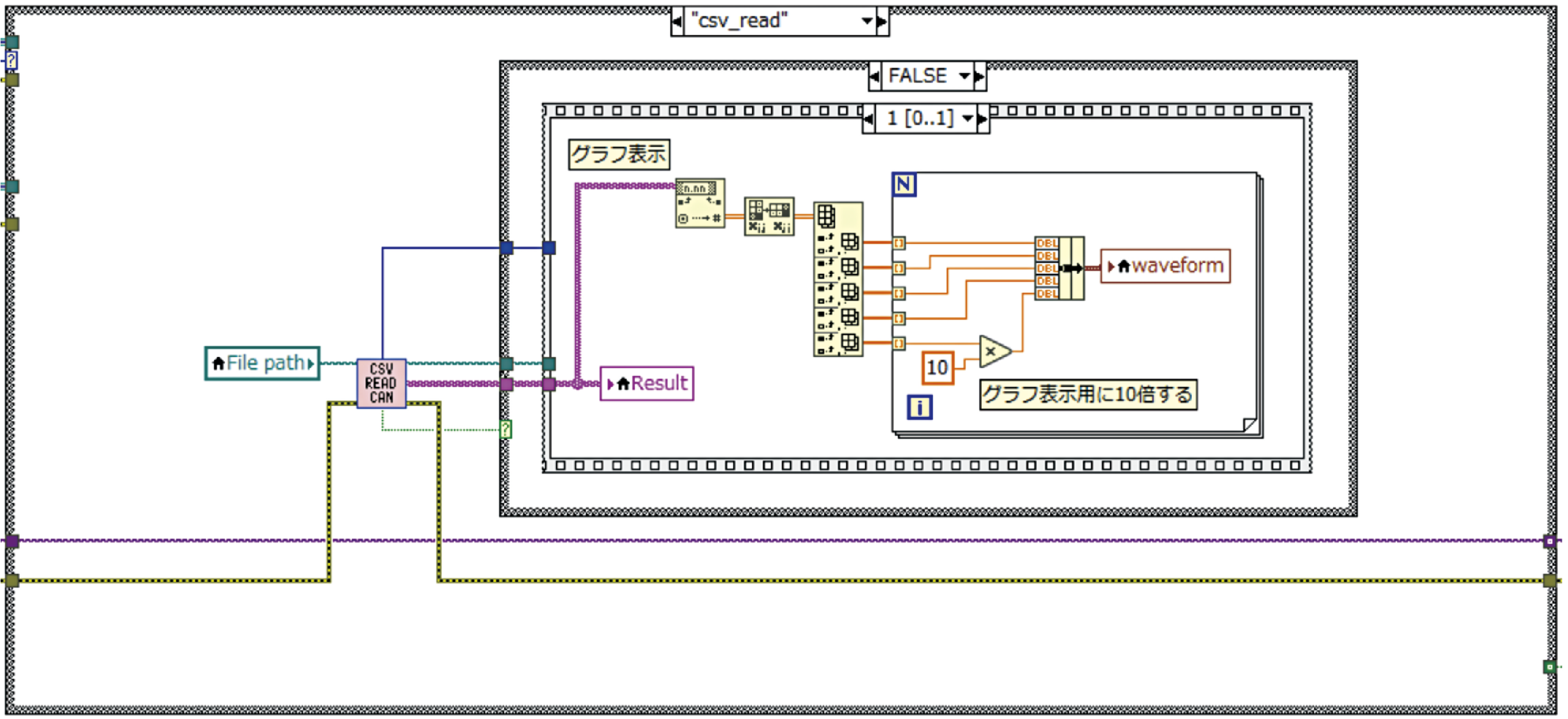 ファイルパスを入力パラメータとして、計測結果とグラフ表示データを読み込むVIを作成する。