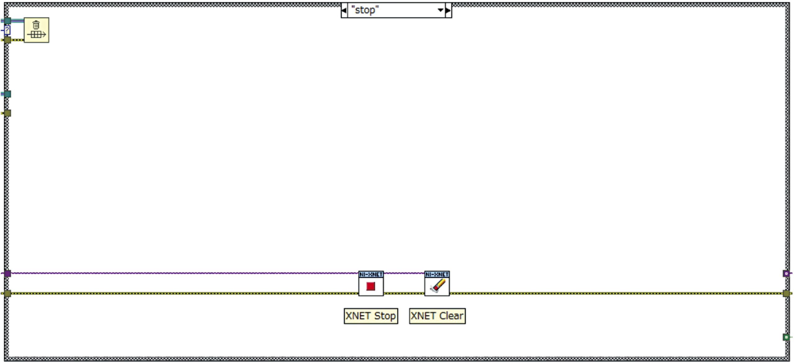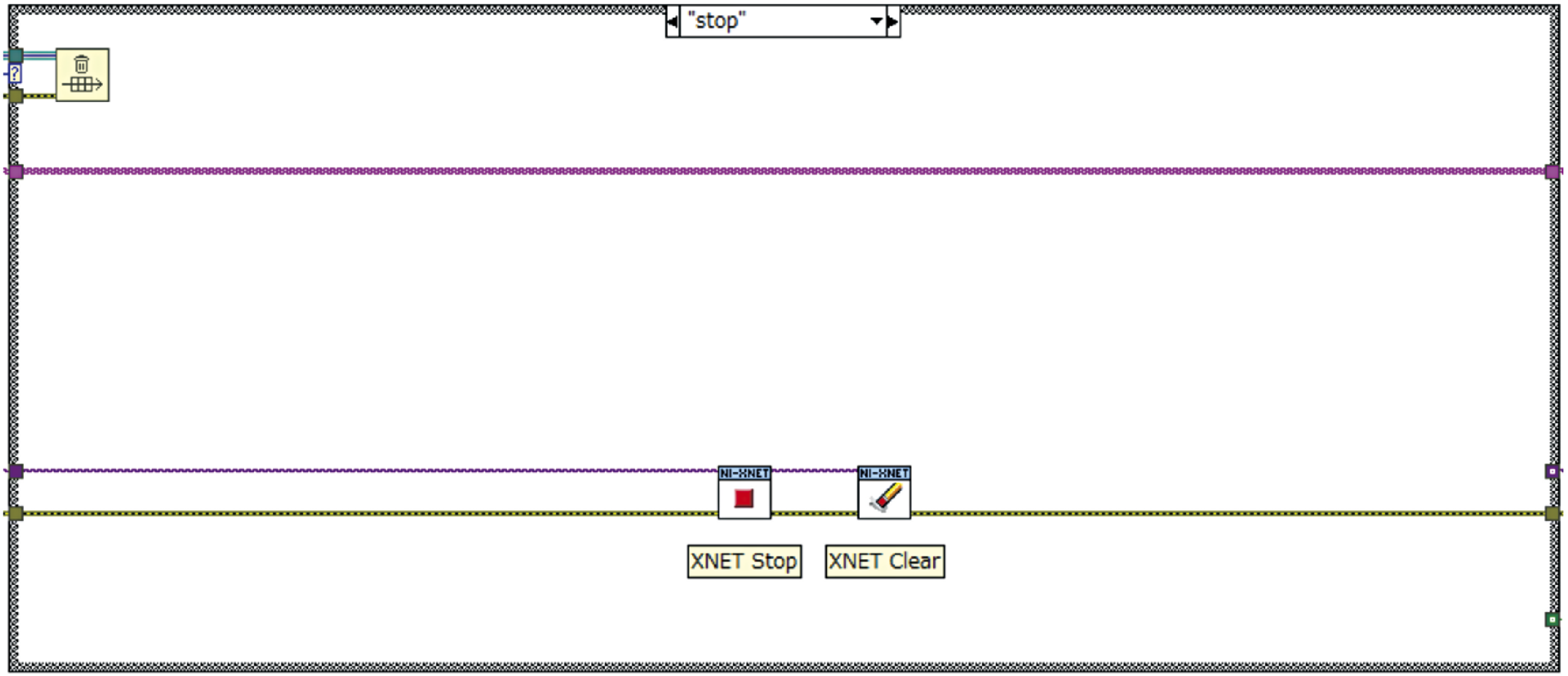 XNET Stop関数とClear関数を配置して(CAN受信)を停止する。キューの排出も実行する。